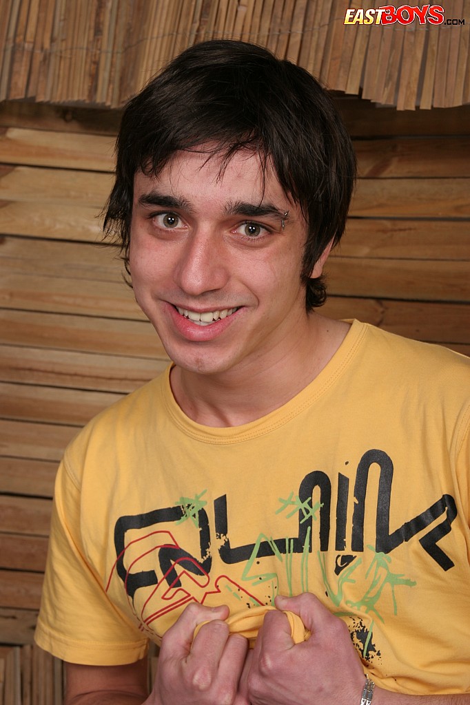 :: Hot brunette boy shows uncut cock