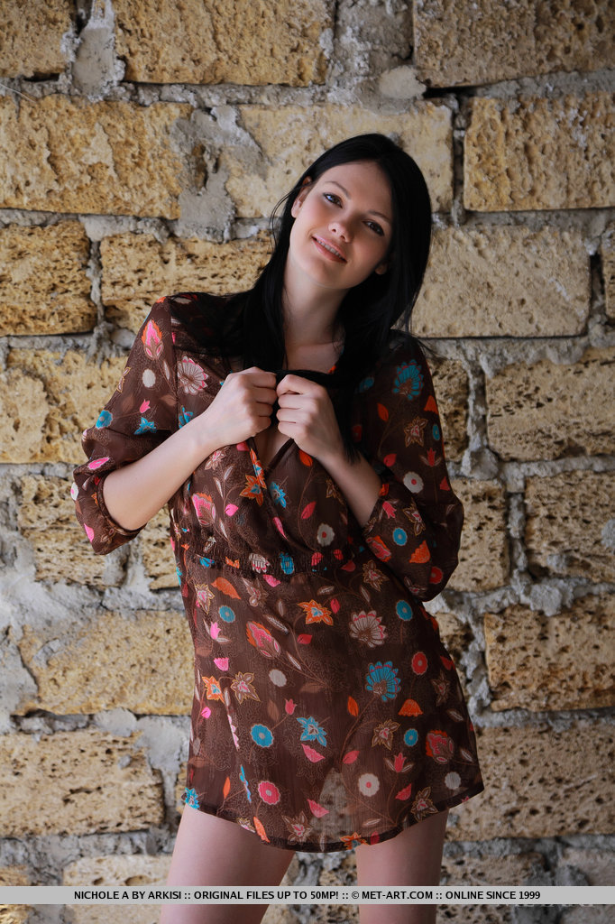 :: Nichole indulges her fans in a slow and exciting tease, flaunting her slim, slender body, beautiful, puffy breasts and well-toned limbs as she poses against the brick wall.